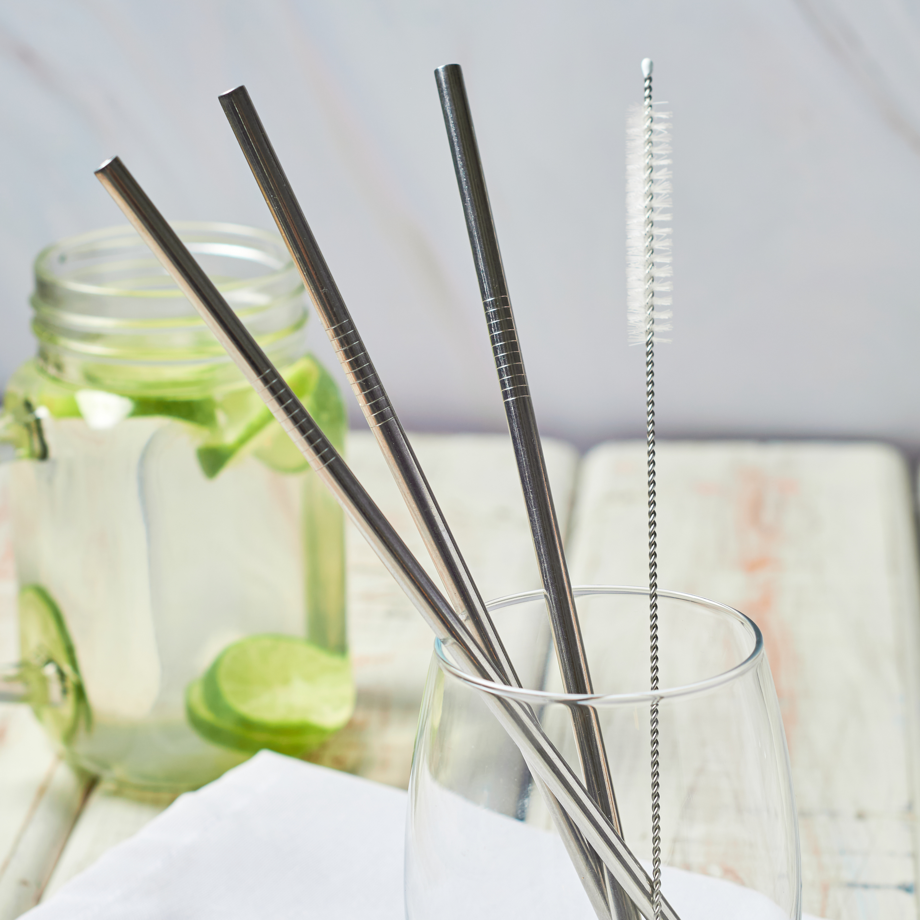Ống Hút Bằng Thép Pack Of 4 Bent Straws + 1 Brush - Stainless Steel - OCEANSRESPECT